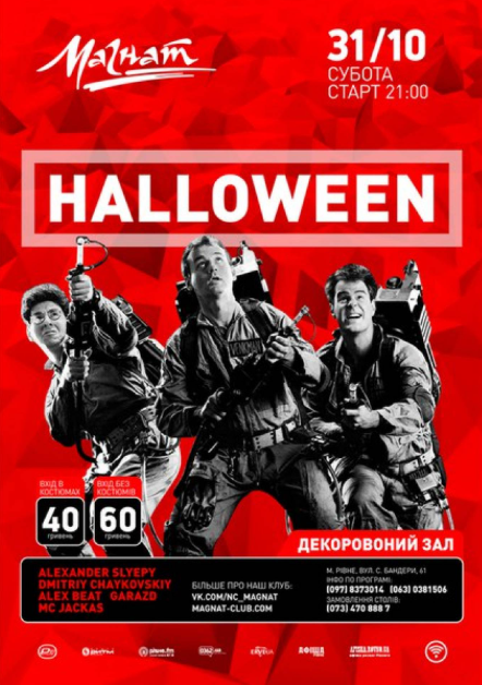 Рівненський «Магнат» пропонує зануритися у «страшно» оформлений зал, де оживають легенди та містичні історії. На гостей чекають конкурси, танці та сюрпризи від організаторів. Дата святкування: 31 жовтня.