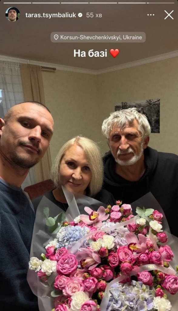Після теплої зустрічі з рідними Тарас Цимбалюк опублікував зворушливе спільне селфі з батьками. На фото видно, що мама актора отримала від сина гарний букет квітів, а на обличчях усіх — щирі усмішки. Знімок із домашньою атмосферою Цимбалюк підписав коротко й символічно: «На базі». Такий момент підкреслив, наскільки важливо не забувати про близьких, навіть у щільному графіку публічної людини.