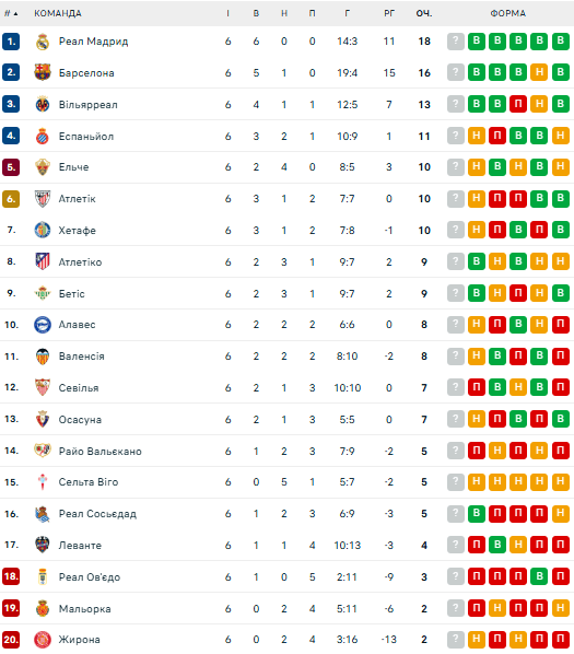 Тур завершиться у понеділок, 29 вересня, грою між “Валенсією” та “Реалом Ов’єдо”. Цей матч може стати вирішальним для нижньої частини турнірної таблиці та подарує фанатам напружену та захопливу боротьбу на полі.