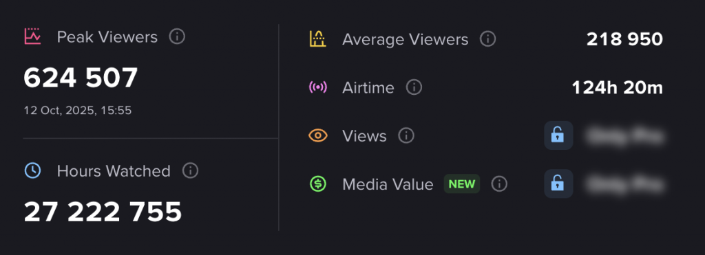 Попри участь усіх топових команд та захопливі матчі, турнір не побив рекордів за глядацькою аудиторією. Пік трансляції склав лише 624 тисячі глядачів, що виявилося нижче очікуваного.