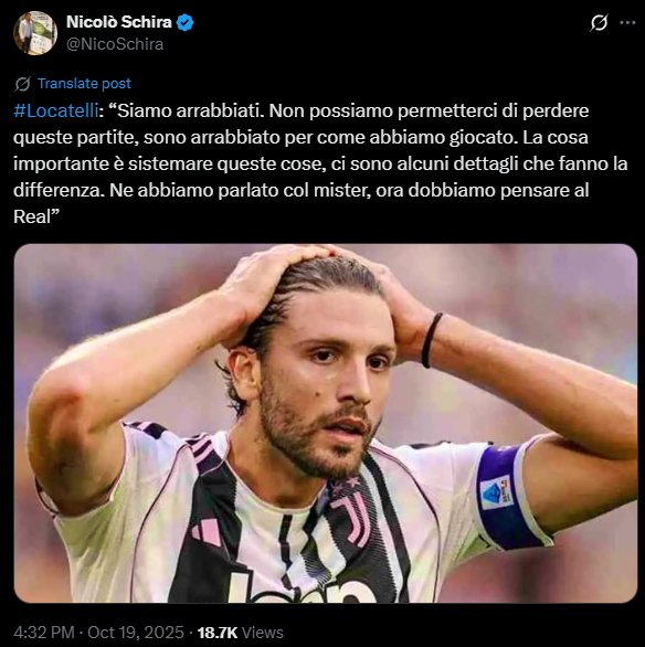 “Ми розлючені. Ми не можемо дозволити собі програвати такі матчі. Я злий через те, як ми грали. Важливо виправити ці моменти, адже дрібниці вирішують результат. Ми вже обговорили це з тренером, тепер маємо зосередитися на грі проти Реала,” — сказав Локателлі.