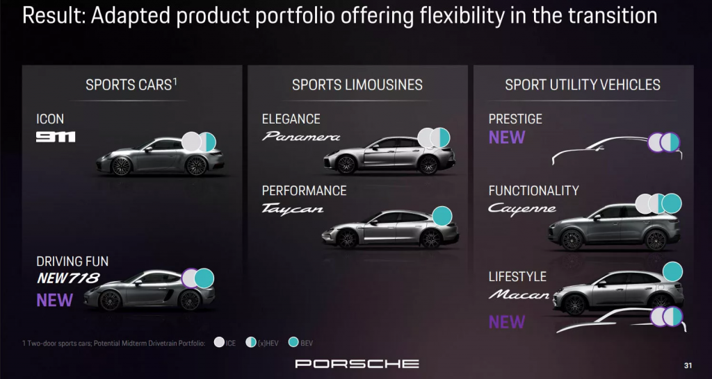 Porsche не планує зупинятися на досягнутому. Компанія активно готує нові моделі з комбінованими силовими установками та електромоторами, щоб зберегти свою позицію на ринку та забезпечити стабільне зростання у найближчі роки. Уже з 2028 року очікується, що бренд запропонує більш збалансовану лінійку автомобілів, включно з бензиновими, гібридними та електричними версіями для моделей Macan та нового 718.