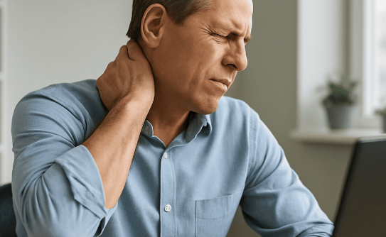 Хронічна неправильна постава, наприклад нахил голови вперед під час роботи за комп’ютером або телефоном, створює постійне навантаження на м’язи та суглоби шиї.